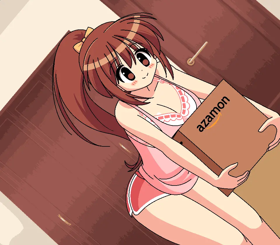 [ぷにっとドット] 茶髪ポニテ荷物持ち上げ